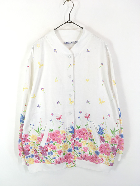 レディース 古着 00s Blain 花 フラワー 蝶々 総柄 プリント スウェット カーディガン L