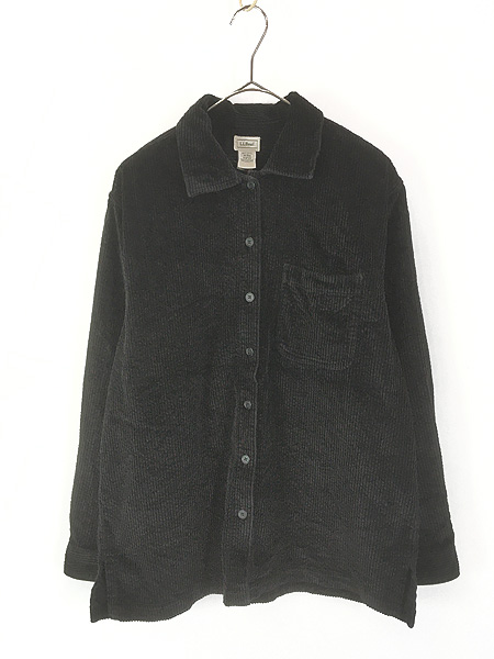レディース 古着 00s LL Bean 無地 ソリッド 太畝 コーデュロイ シャツ 黒 M