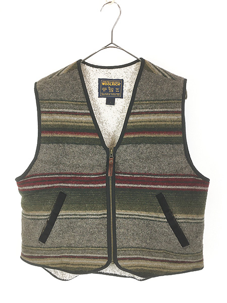 レディース 古着 90s USA製 WoolRich ボア フリース ライナー マルチ ボーダー フルジップ ウール ベスト M