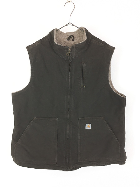 レディース 古着 10s Carhartt DKB ダークブラウン ダック ボア フリース ライナー ハイネック ベスト XL