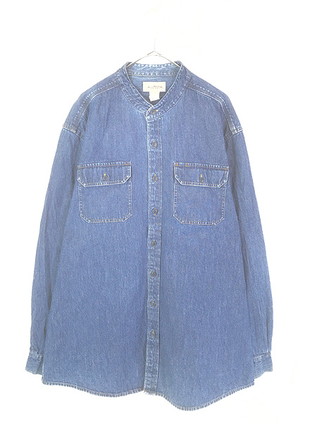 ¸ÅÃå 00s LL Bean ¡ÖKATAHDIN IRON WORKS¡× 100% ¥³¥Ã¥È¥ó ¥Ö¥ë¡¼ ¥Ç¥Ë¥à ¥Ð¥ó¥É¥«¥é¡¼ ¥·¥ã¥Ä L-T