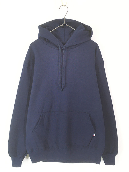 古着 90s USA製 Russell 無地 ソリッド セットイン スウェット パーカー ネイビー L ミント!!