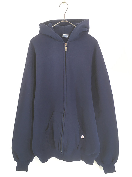 古着 90s USA製 Russell 無地 ソリッド セットイン スウェット ジップ パーカー ネイビー XL