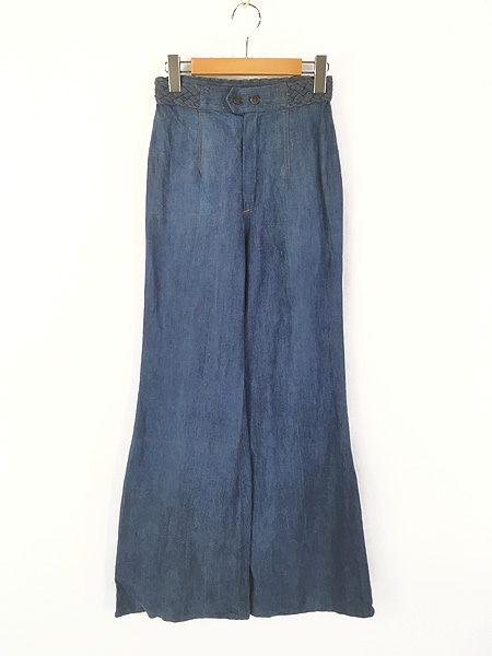 レディース 古着 70s Condor ブレイデッドトリム ブルー デニム フレア ベルボトム パンツ ジーンズ 9-10 W25 L31