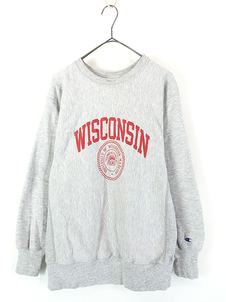 古着 90s USA製 Champion Reverse Weave 「WISCONSIN」 2段 カレッジ スウェット L