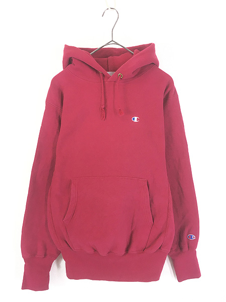 古着 90s USA製 Champion Reverse Weave 青目 ワンポイント リバース スウェット パーカー レッド M