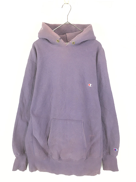 古着 90s USA製 Champion Reverse Weave ワンポイント リバース スウェット パーカー パープル ナス紺 XL