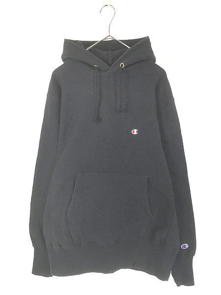 古着 90s USA製 Champion Reverse Weave ワンポイント リバース スウェット パーカー ブラック L ミント!!