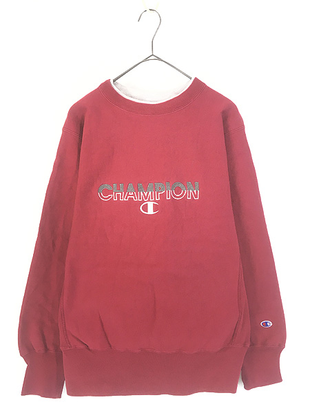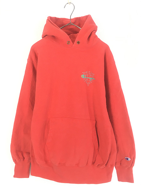 古着 90s USA製 Champion Reverse Weave ワンポイント リバース スウェット パーカー レッド XL