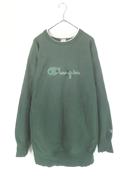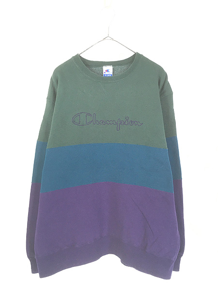 古着 90s USA製 Champion BIG ロゴ 刺しゅう 3カラー 前V スウェット トレーナー XXL