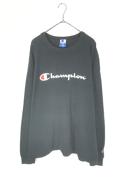 古着 90s USA製 Champion BIG ロゴ 長袖 Tシャツ ロンT ブラック L