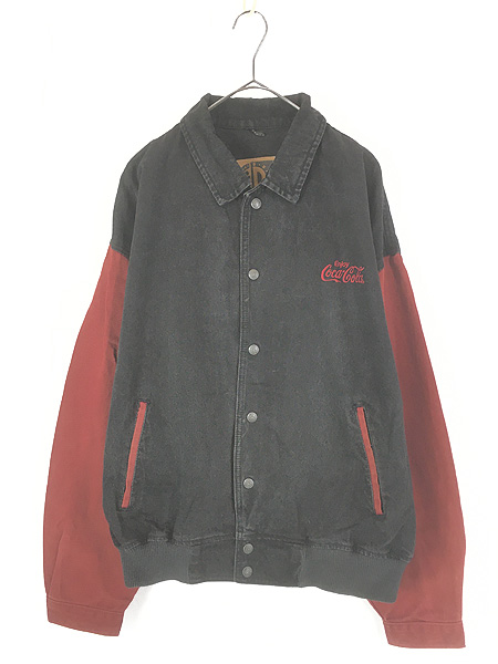 古着 90s Coca-Cola コーラ 企業 刺しゅう ブラック デニム スタジャン ジャケット L