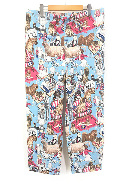 古着 USA製 The Cat's Pajamas 犬 わんちゃん ポップ アート 総柄 イージー パンツ S