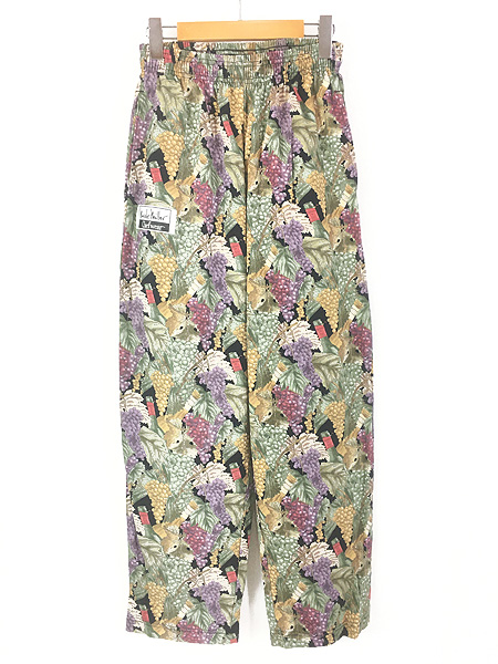 古着 90s USA製 Chefwear ワイン リーフ ぶどう 総柄 アート イージー パンツ テーパード ポケット付 S