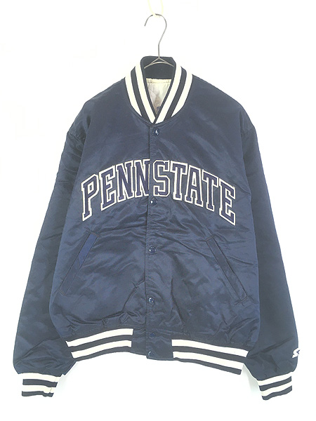 古着 80s USA製 STARTER 「PENN STATE」 カレッジ 光沢 サテン スタジアム ジャケット スタジャン L