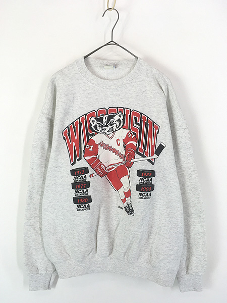 古着 90s USA製 NCAA 「WISCONSIN」 バッキー カレッジ ホッケー スウェット トレーナー L