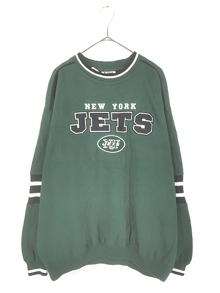 古着 90s NFL New York Jets ジェッツ 刺しゅう リブライン スウェット トレーナー XL