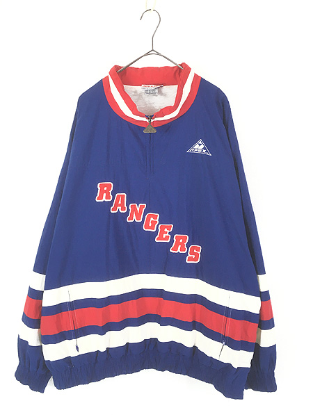 古着 90s NHL New York Rangers レンジャーズ ハーフジップ プルオーバー ナイロン ジャケット XL