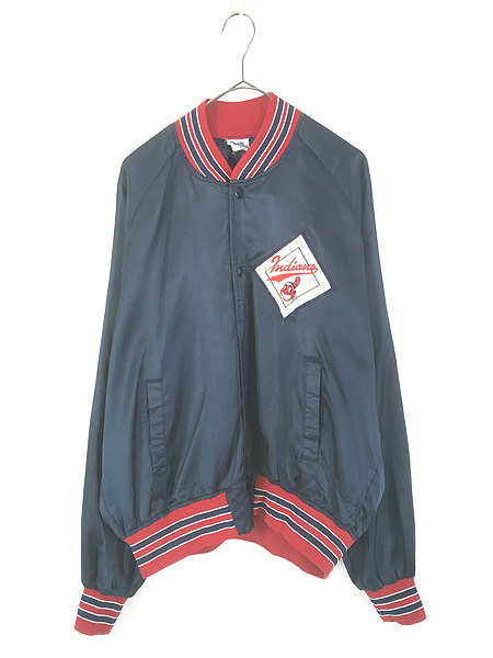古着 90s Chalk Line MLB Cleveland Indians インディアンズ ポリエステル サテン ライト スタジアム ジャケット スタジャン XL