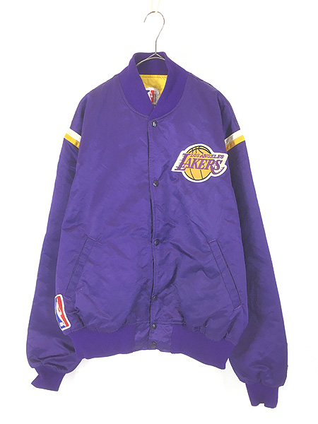 古着 80s USA製 STARTER NBA Los Angeles Lakers レイカーズ 光沢 サテン スタジアム ジャケット スタジャン XL