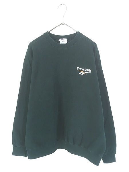 古着 90s USA製 Reebok ワンポイント ロゴ 刺しゅう スウェット トレーナー ダークグリーン M