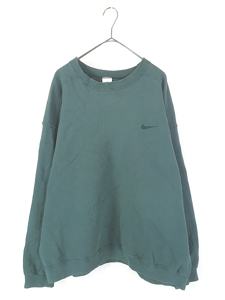 古着 90s NIKE スウォッシュ ワンポイント ソリッド スウェット トレーナー グリーン XL