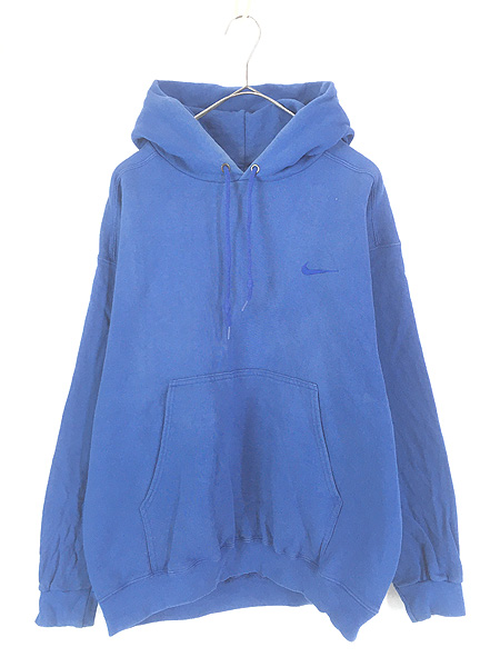古着 90s USA製 NIKE スウォッシュ ワンポイント 刺しゅう ソリッド スウェット パーカー ブルー M