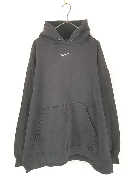 古着 90s USA製 NIKE センター スウォッシュ ロゴ 刺しゅう スウェット パーカー ブラック XL