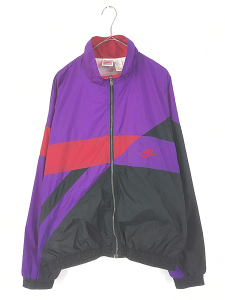 古着 90s NIKE 裏地 天竺 スウォッシュ 刺しゅう クレイジー ナイロン ジャケット XL