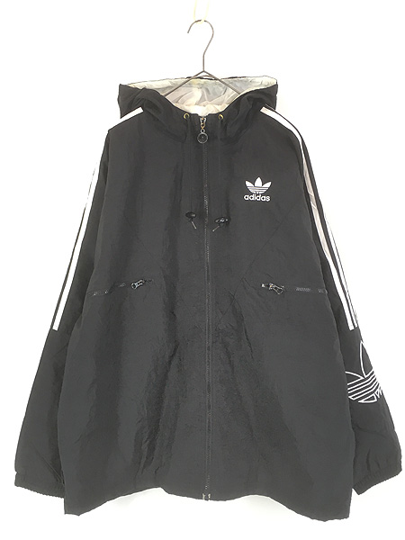 古着 90s adidas BIG ロゴ & トレフォイル パデット フーデッド ジャケット パーカー L