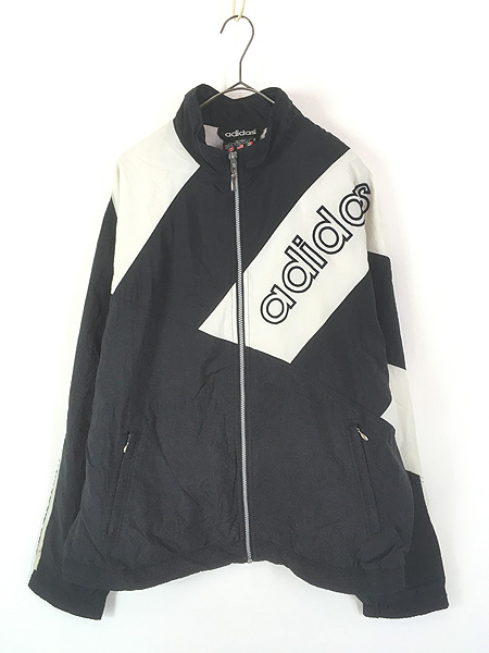 古着 90s adidas 裏地 天竺 BIG ロゴ 刺しゅう クレイジー ナイロン ジャケット M
