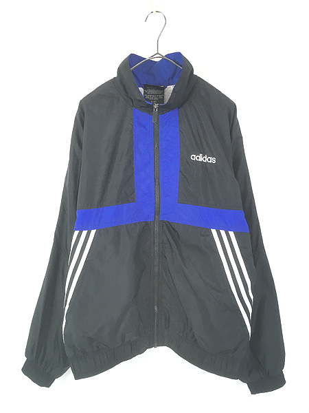 古着 90s adidas 裏地 天竺 ブラック×ブルー クレイジー ナイロン ジャケット M