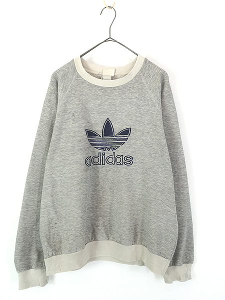 古着 80s adidas BIG トレフォイル 刺しゅう 2カラー ラグラン スウェット トレーナー L位