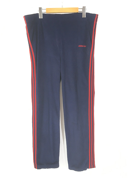 古着 80s adidas 3ライン ネイビー×レッド ベロア パイル ジャージ パンツ S