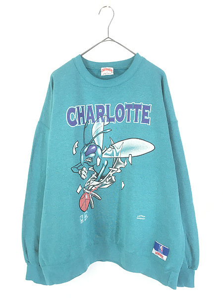 ¸ÅÃå 90s USAÀ½ NBA Charlotte Hornets ¥Û¡¼¥Í¥Ã¥Ä ξÌÌ ¤À¤Þ¤·³¨ ¥×¥ê¥ó¥È ¥¹¥¦¥§¥Ã¥È ¥È¥ì¡¼¥Ê¡¼ XL