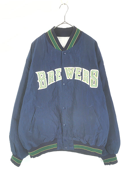 古着 90s USA製 STARTER MLB Milwaukee Brewers ブルワーズ パデット ナイロン スタジアム ジャケット スタジャン XL