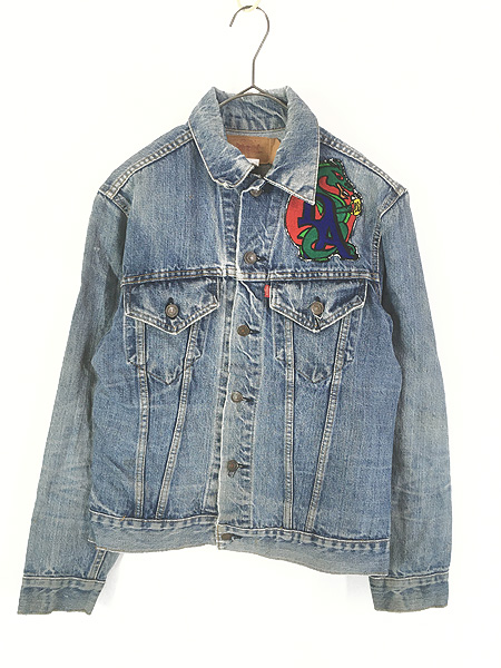 レディース 古着 70s USA製 Levi's 70505 ドラゴン ワッペン ブルー デニム トラッカー ジャケット Gジャン M位