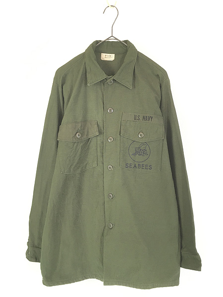 ¸ÅÃå 70s ÊÆ·³ US NAVY SEABEES 100% ¥³¥Ã¥È¥ó¥µ¥Æ¥ó ¥ß¥ê¥¿¥ê¡¼ ¥Õ¥¡¥Æ¥£¡¼¥° ¥·¥ã¥Ä 16 1/2 ¥ß¥ó¥È!!