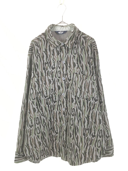古着 80s USA製 WoolRich 「Shadow Bark」 シャドゥバーク フレイム カモ 迷彩 ウール シャツ XL ミント!!