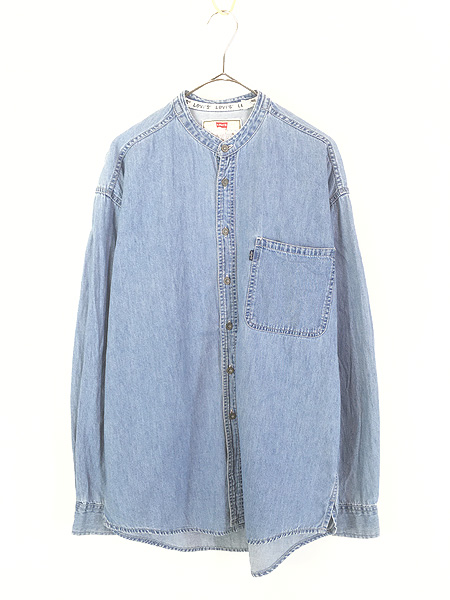 古着 90s Levi's 100% コットン ブルー デニム バンドカラー シャツ M