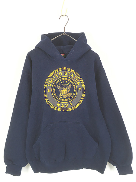 古着 90s USA製 Jerzees 無地 プレーン セットイン スウェット パーカー ネイビー L