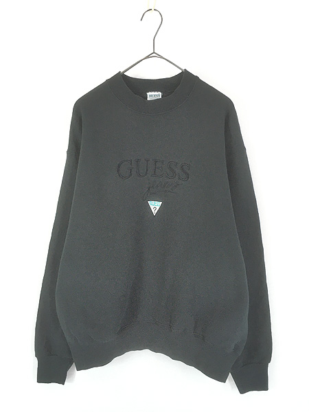古着 90s USA製 GUESS JEANS ロゴ ステッチ スウェット トレーナー ブラック L