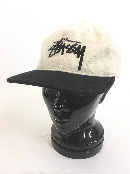 雑貨 古着 Stussy ロゴ ワンポイント 刺しゅう バイカラー ウール キャップ 帽子