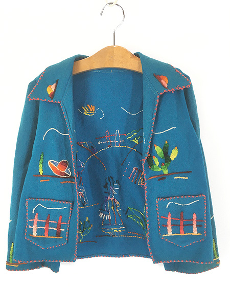 キッズ 古着 50-60s メキシコ 民族 フェルト ステッチ ヴィンテージ ウール ジャケット 10歳位