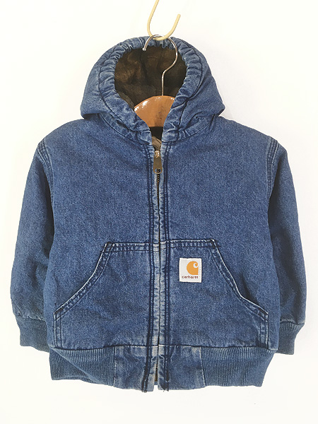 キッズ 古着 00s Carhartt 裏地 チェック柄 ブランケット デニム アクティブ パーカー ジャケット 3歳位