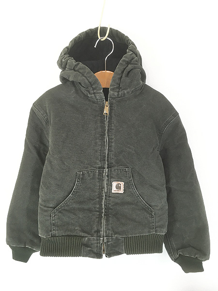 キッズ 古着 00s Carhartt 防寒 裏地 キルティング MOS モスグリーン ダック ワーク アクティブ パーカー S 6-7歳位