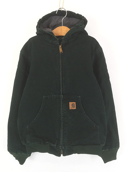 キッズ 古着 00s Carhartt 防寒 裏地 フリース SPC スプルースグリーン ダック ワーク アクティブ パーカー L 10-12歳位