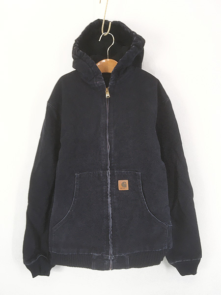 キッズ 古着 Carhartt 防寒 裏地 キルティング ダークネイビー ダック ワーク アクティブ パーカー S 7-8歳位