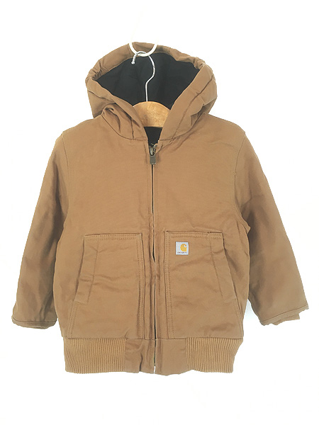 キッズ 古着 Carhartt 防寒 裏地 キルティング セパポケ ブラウン ダック ワーク アクティブ パーカー 4歳位