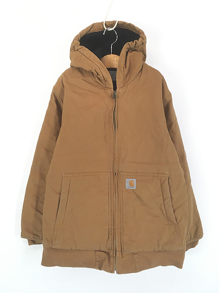 キッズ 古着 Carhartt 防寒 裏地 キルティング セパポケ ブラウン ダック ワーク アクティブ パーカー L 14-16歳位